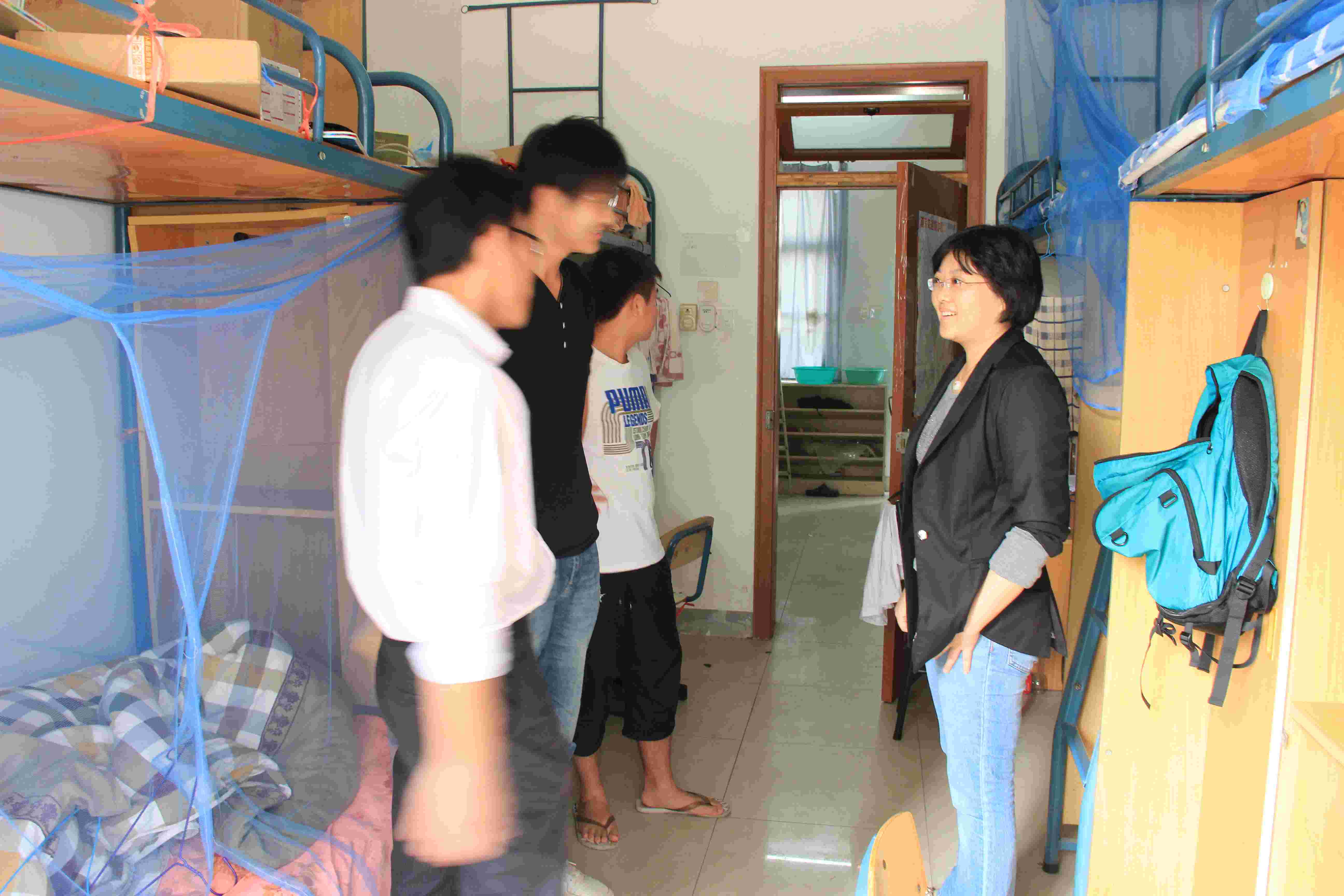 2012年9月28日中午教育科学与技术学院党委副书记王小露与全体辅导员一起检查学生宿舍,在国庆长假之前排查学生宿舍安全隐患,紧急采取整改措施,确保学生假期安全。