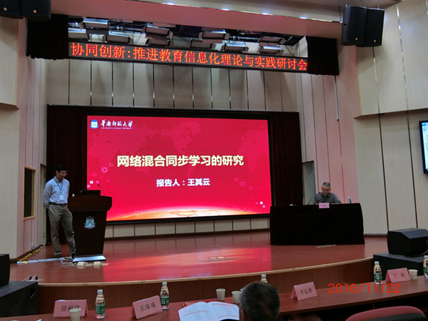 2016年11月22日,由中国教育技术协会主办的“协同创新:推进教育信息化理论与实践研讨会”在华南师范大学召开。来自全国各地的教育技术学领域的专家、基础教育学科老师以及博、硕士研究生近五百人参加了研讨会。