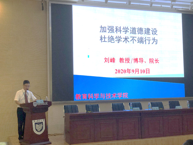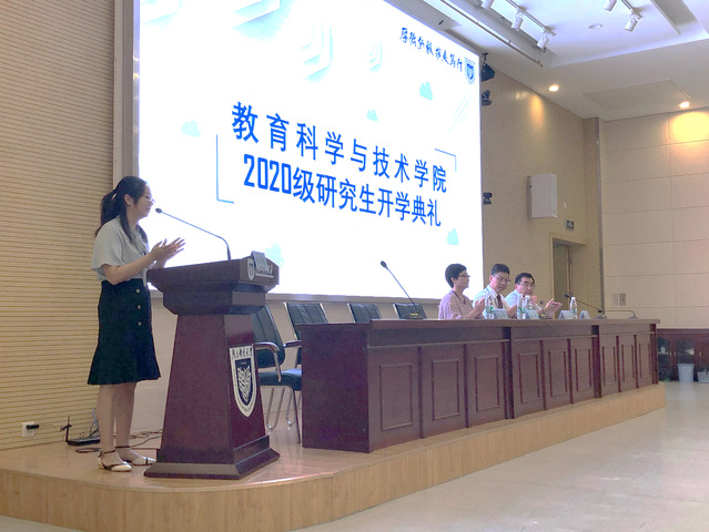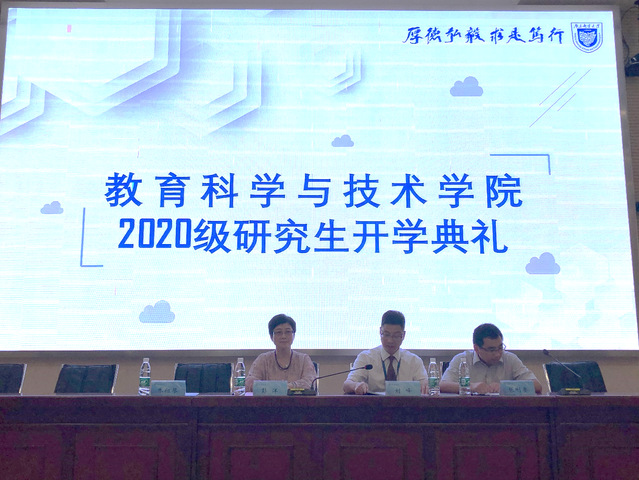 新的学期,开启新的希望,承载新的梦想。9月10日上午,恰逢教师节之际,教育科学与技术学院在计算机学科楼学术报告厅举办了2020级研究生新生开学典礼,典礼由党总支副书记乔祖琴主持,教育科学与技术学院党总支书记彭洋、院长刘峰、副院长张刚要,导师代表及全体研究生新生参加了本次典礼。