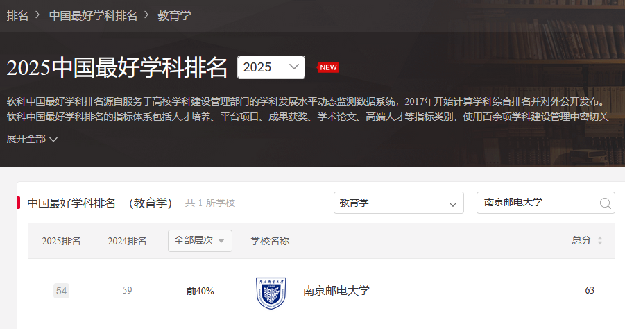 10月15日,上海软科正式发布2025软科中国最好学科排名。我院教育学科位列榜单,目前全国排名54,较去年上升5名。